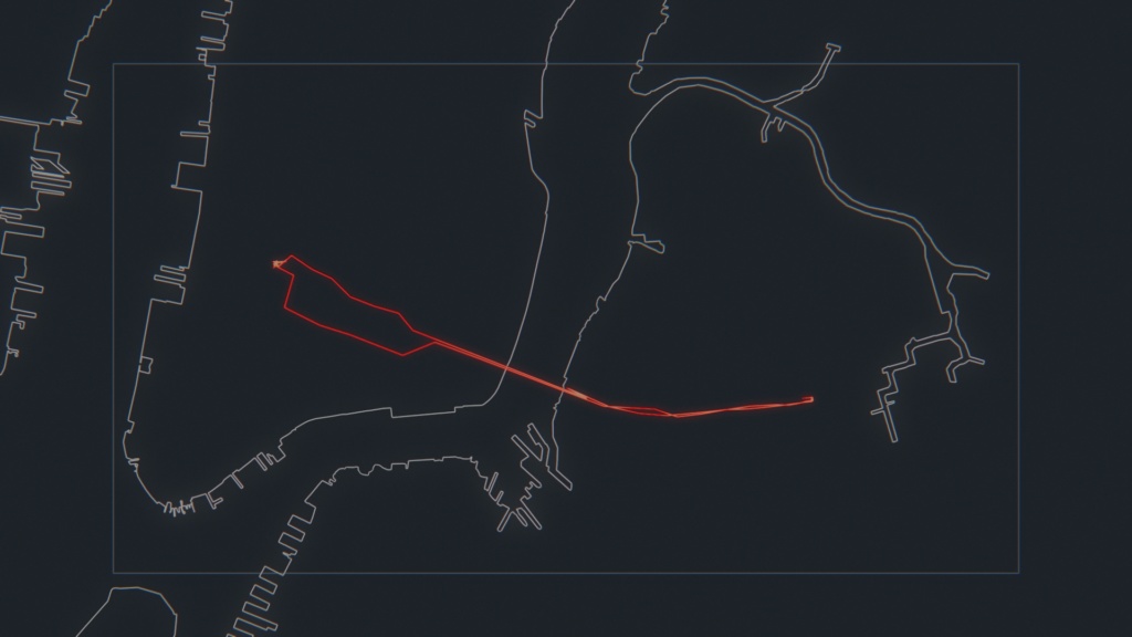 Personal geolocation data were captured over a period of two years (May 15 – 17). The 300,000 collected points are visualized and sonified over time at a rate of one day per rendered frame. The series of longitude and latitude coordinates also interpreted as two audio channels.